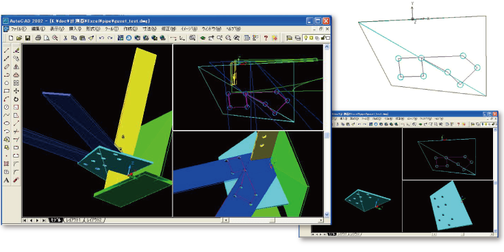 - 右図は計測データをCADに連携で設定したデータをAutoCADに出力した例