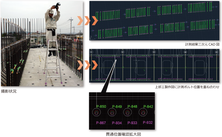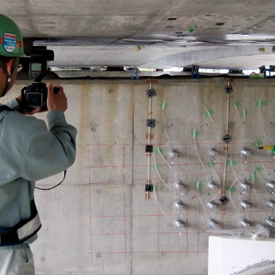 橋梁下部工鉄筋を計測し